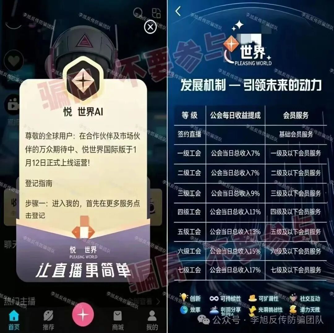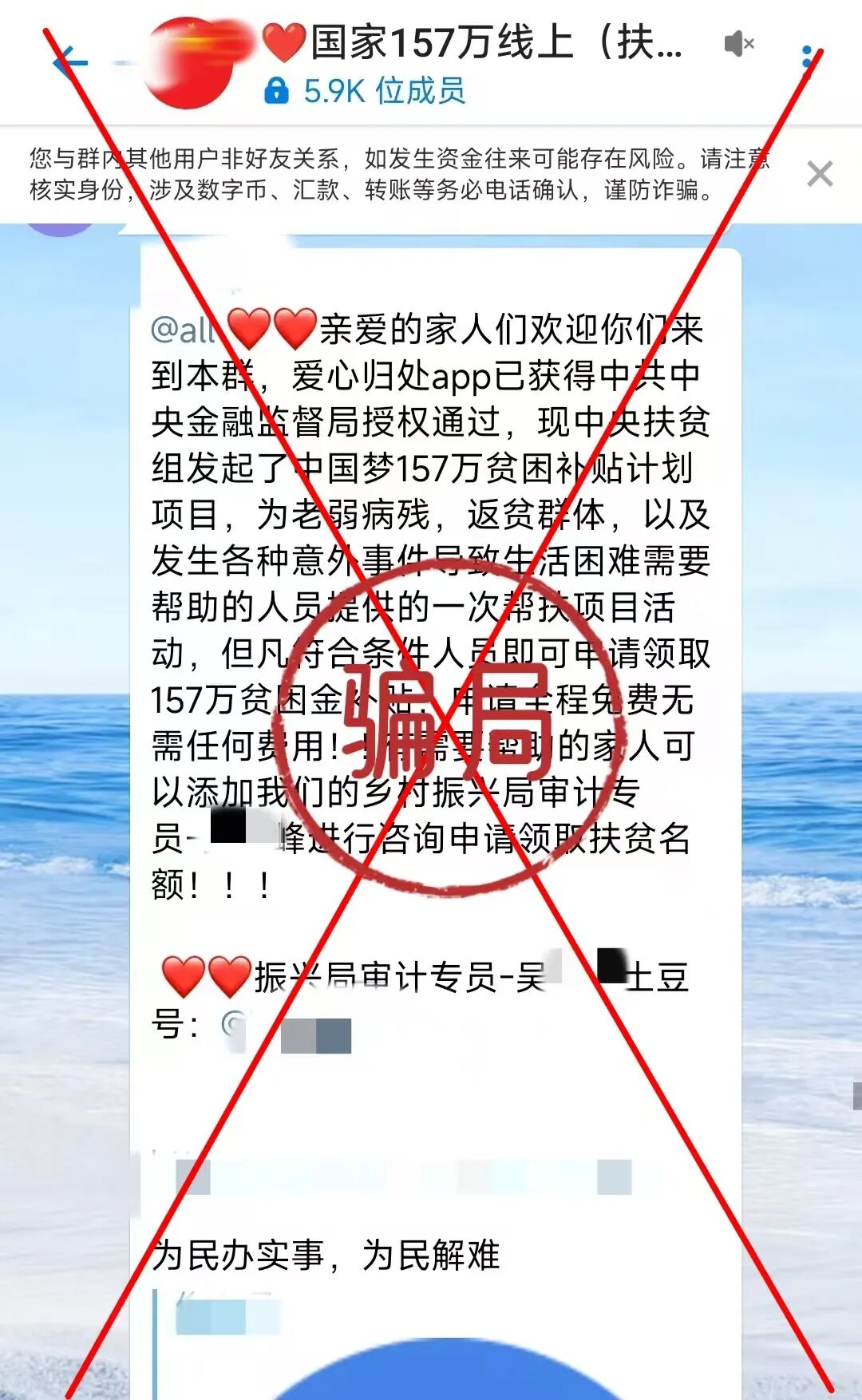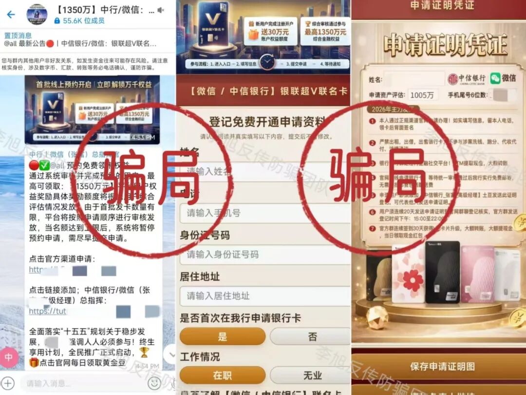 “1350万银联超V联名卡” 假冒“中信银行”,谎称联合微信推出所谓的“银联超V联名卡“。吹嘘该卡内含”1350万综合权益“,号称可在任意平台、ATM取现消费。 小编利用虚假信息填写申请表后,在没有任何评估审核的情况下,就显示可申请1105万。可见这不过就是一个可以随便填写的数字。在收集到足够多的用户信息后,很可能就会假借“寄卡”的名义收取各种费用。 大家注意,正规银行卡需要前往窗口办理,或者通过官方APP线上办理,根本不可能在一个境外聊天软件内,通过一个来路不明的链接进行申请,还望大家不要盲目将自己的个人信息交给陌生人。 “爱心归处”APP(国家157万) 冒充国家部门,谎称为困难群众发放157万扶贫金,以此骗取参与者个人信息。利用20元邀新奖励引诱参与者主动拉新。 “未来中国” 谎称“国家项目”,以所谓的329万元“专项资金”为诱饵,吸引参与者进行实名认证,并要求填写银行卡号、开户行、身份证等极度敏感的信息。 同样利用“拉人头”机制,宣称邀请新人可以获得额外的“养老补贴”、“医疗补贴”等,利用人们对未来保障的关切实施诈骗。 “树交所” 自“树拍”爆雷后,该项目谎称能够释放旧资产,精准吸引了大量急于挽回损失的老用户。但是,想要解锁旧资产,必须至少完成一笔交易还要推荐3名新人。这明显是针对特定受害人群体的、有预谋的二次收割。 细看其模式,依然是“低价买入、挂单卖出”赚取差价的资金盘竞拍模式,与“树拍”如出一辙,仅仅是提高了手续费。其充值收款方依然是来历不明的个人账户,APP下载时也会弹出安全风险提示。 老话说“前事不忘,后事之师”,已经在一个坑里跌倒过一次,就千万不要再被同一块石头绊倒第二次。 “梦想家园” 冒充国家公职人员,声称为其发放200万扶贫金用于“处理债务问题”。这对那些在网络项目中屡屡受骗、负债累累的朋友们来说,极具诱惑力。 但所谓的“梦想家园”APP只是一个制作极其简陋的聊天软件,根本无法通过正规渠道下载。 它的目的根本不是发钱,而是以审核为由,骗取用户详尽的个人资料、银行卡流水截图、微信收款码,甚至以此收取手续费。这些信息一旦泄露,后果不堪设想。 “中国华能698万补助金” 冒充“中国华能集团”,打着其名义谎称为参与者发放698万补助金,借填写申请表办理所谓的“银行卡”之名6套取用户个人信息。 请大家牢记,任何大型企业或国家机关的专项补贴、补助金,都有严格、公开的申请流程,绝不会通过一个来路不明的链接或APP私下办理。 “悦目世界海外版”APP 自2024年卷款跑路后,如今改头换面,以“海外版”的名义重新出现。利用“缴费可提现原有资产”的噱头吸引了一大波心有不甘的“老用户”,其模式与当年的“悦目”几乎一模一样。 这是典型的“二次诈骗”。骗子归来不是为了弥补大家的损失,而是看准了部分受害者急于回本的心理,企图再骗一次。 “工商银行稳定经济促销费专项工程”骗局 冒充“工商银行”,打着“提振消费”名义,忽悠参与者提交个人信息领取70万额度。为了增加可信度,骗子会在项目群中安排大量“托儿”,不断发布伪造的“额度到账”或“提现成功”的截图,制造火爆假象,引诱更多人上当。 这个项目要么是利用收集来的个人信息进行精准电诈骗,要么就是利用这些账户进行“跑分”洗钱等违法犯罪活动。大家千万不要被蒙蔽。 “AI智付钱包” 谎称是由财政部与支付平台联合推出的项目,声称用户填写详细个人身份信息就可申请一张内涵1200万资金的“AI智付金卡”。 为了骗局更逼真,不法分子会通过技术手段篡改、剪辑新闻视频,甚至拍摄虚假的ATM机取现视频。这一切都是包装。 目的仍然是窃取大家的个人信息,后续很可能会以“工本费”、“激活费”、“保证金”或“税款”等名义,对信以为真的受害者进行进一步诈骗。 “王某某解毒茶” 一款普通代用茶,却公然宣称能解“农药、尼古丁、西药”等七类毒素,并虚假借用“央视”品牌进行背书。参与者需以198元/盒的价格购买,其奖励制度完全依赖于发展下线,依据九级层级关系计算直推、级差等奖励。 根据《广告法》及《食品安全法》,普通食品不得宣传任何疾病治疗或“解毒”功效。其销售模式依靠拉人头形成层级,收益来源于后来者的购茶款,已涉嫌传销。所谓“高额奖励”实为空中楼阁,最终只会导致底层参与者损失惨重。 北海“资本运作”1043传销组织 打着“建设北部湾”“资本运作”等旗号,鼓吹投资7万元,最终能获得1043万元的巨额回报。 公然玩弄“真假对立”的话术陷阱,宣称“有假就有真”,将被打击的传销团队归结为投资“69800”的类型,声称只有缴纳70000元才是“真项目,以此话术误导人们区分传销与他们口中的“合法项目”。 无论投资额度是69800元还是70000元,只要其收益模式依赖于发展下线、形成层级关系并按人头计酬,就符合传销的特征,都是国家法律明令禁止和打击的违法犯罪行为。 深陷北海“1040阳光工程”传销迷雾:四位亲历者的被骗与觉醒实录 如果您觉得今天的文章有帮助,不妨发到“相亲相爱一家人”群或分享给身边的朋友,提醒大家注意。 或者您还遇到那些项目正在犹豫,已可以在评论区和大家一起聊一聊。 愿我们都能守好信息,守住钱袋,过好安稳的每一天。