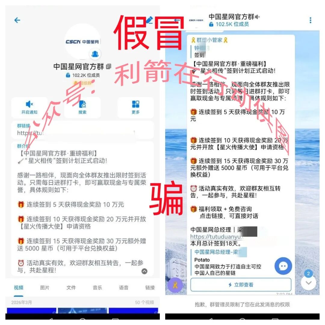 假冒的“中国星网”项目中宣传“连续签到5天奖励10万元,连续签到10天奖励20万元,连续签到10天,奖励10万元并且开放星火传播大使,连续签到15天,可获得30万元,并且还要获得5000星币............”,这是一眼假的剧,哪有白给你钱的好事情?查到该项目的网站在境外,系非法网站,是诈骗项目。